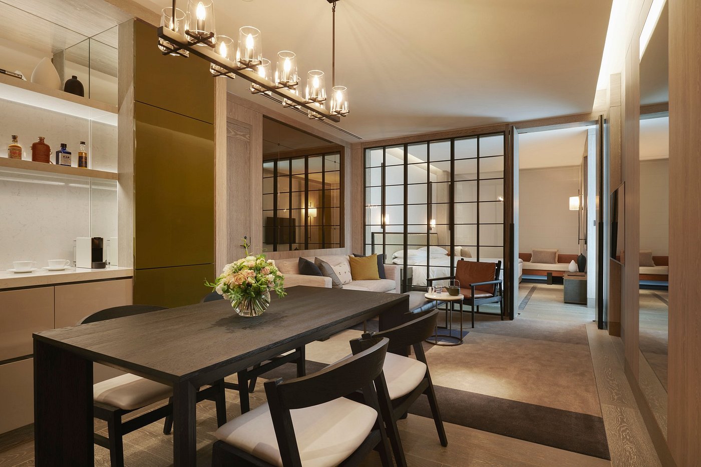The day moves between motion and pause. Time drifts from the slopes to long lunches and quiet moments indoors, where glass and stone keep the mountains always present.
