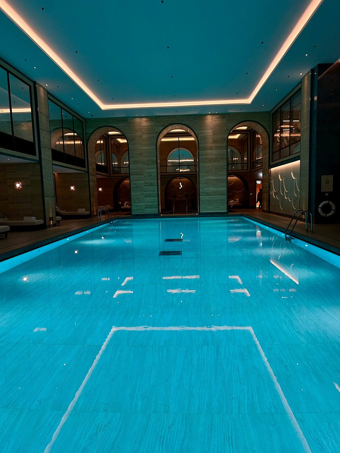 • The spa area (Guerlain Spa + Pillar Wellbeing) extends over several floors, with a 20 m pool, thermal suites, gym & more.