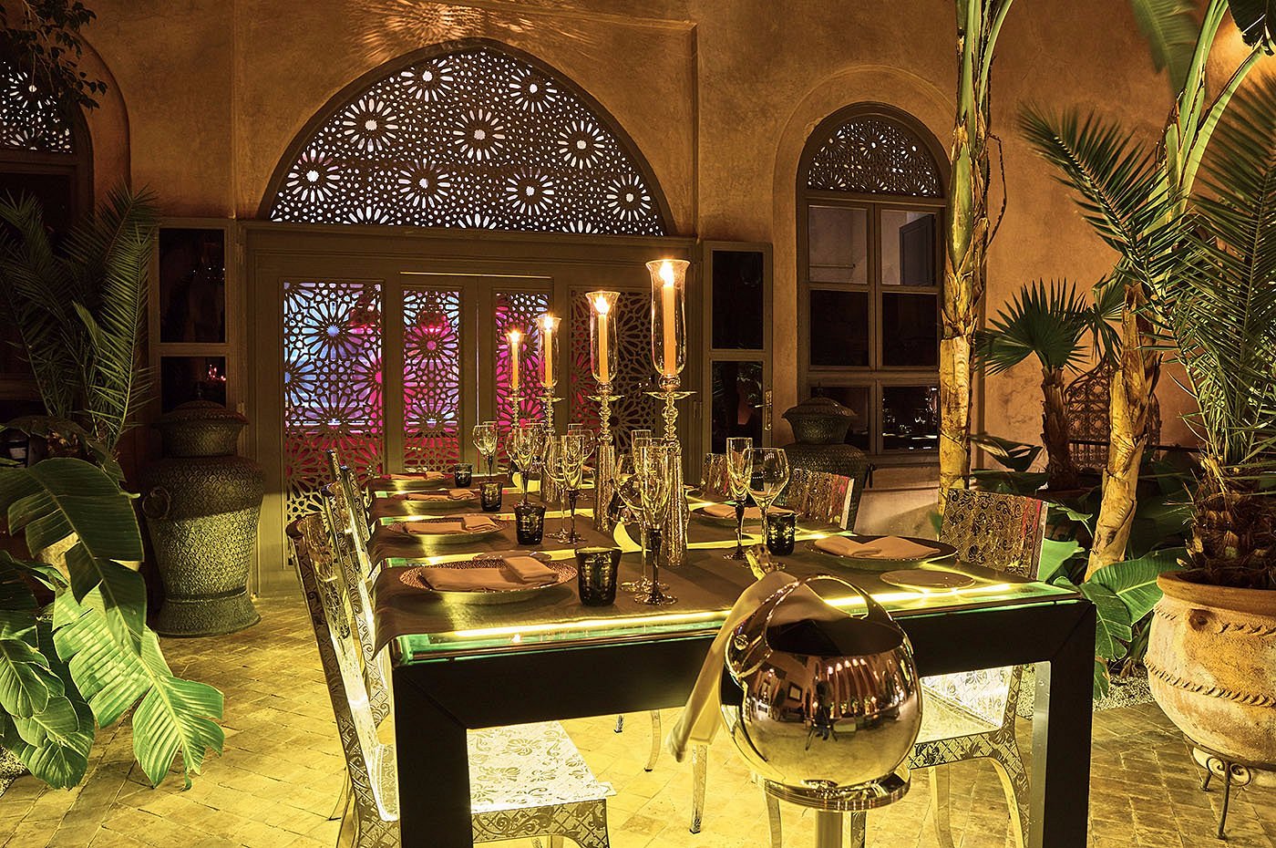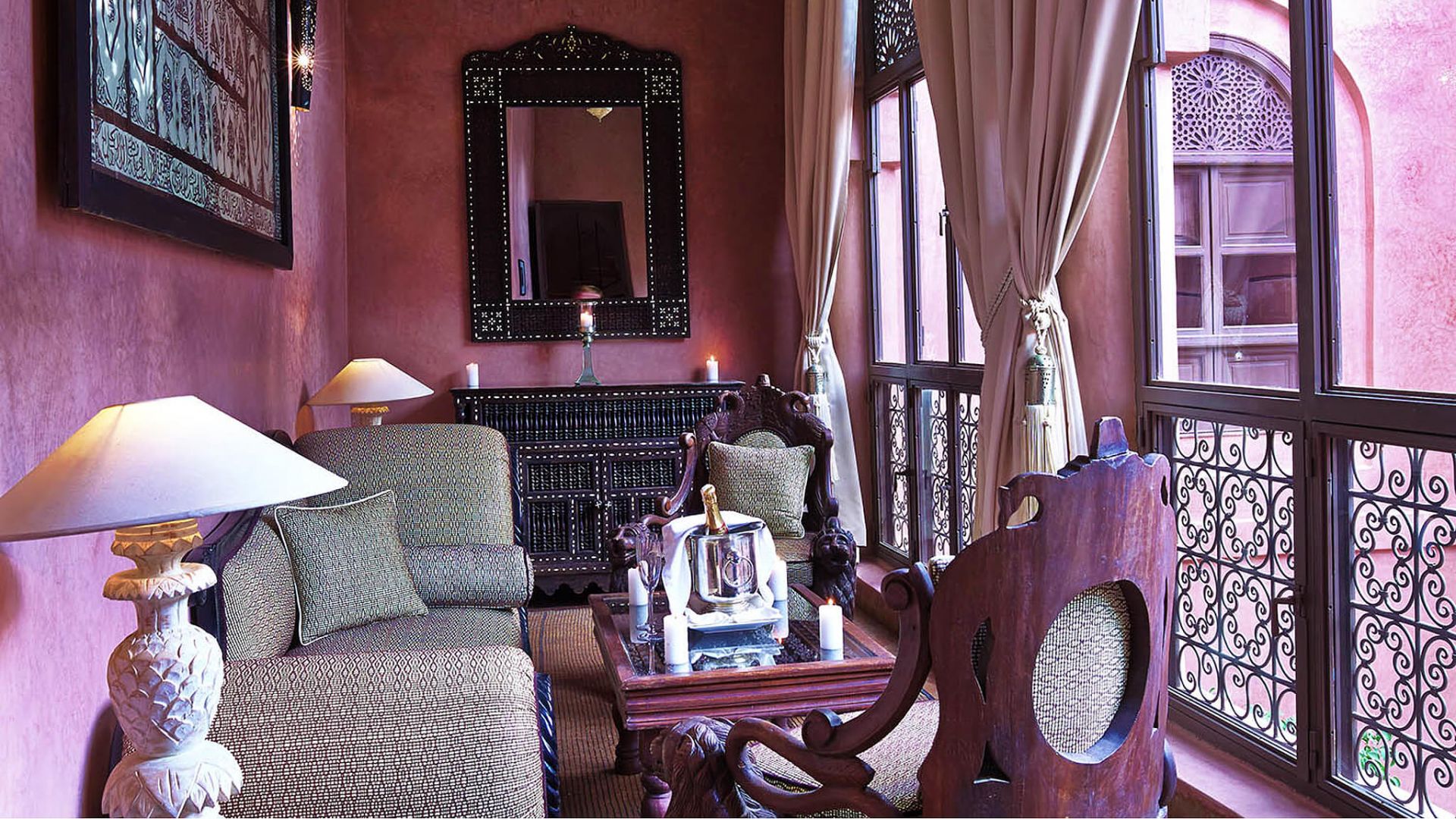 Wake to birds fluttering in the courtyard palms. Enjoy fresh orange juice, honeyed pastries, and mint tea served on your terrace as sunlight spills over the pink rooftops of Marrakech.