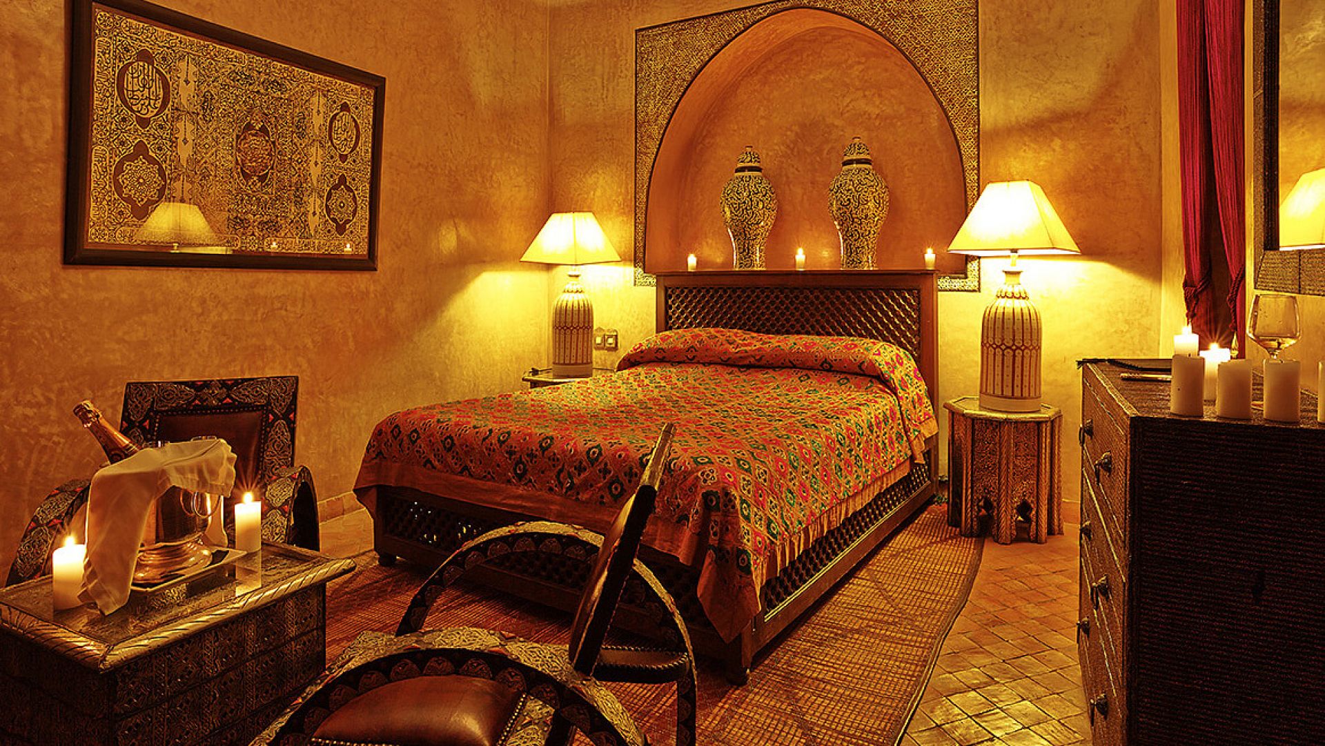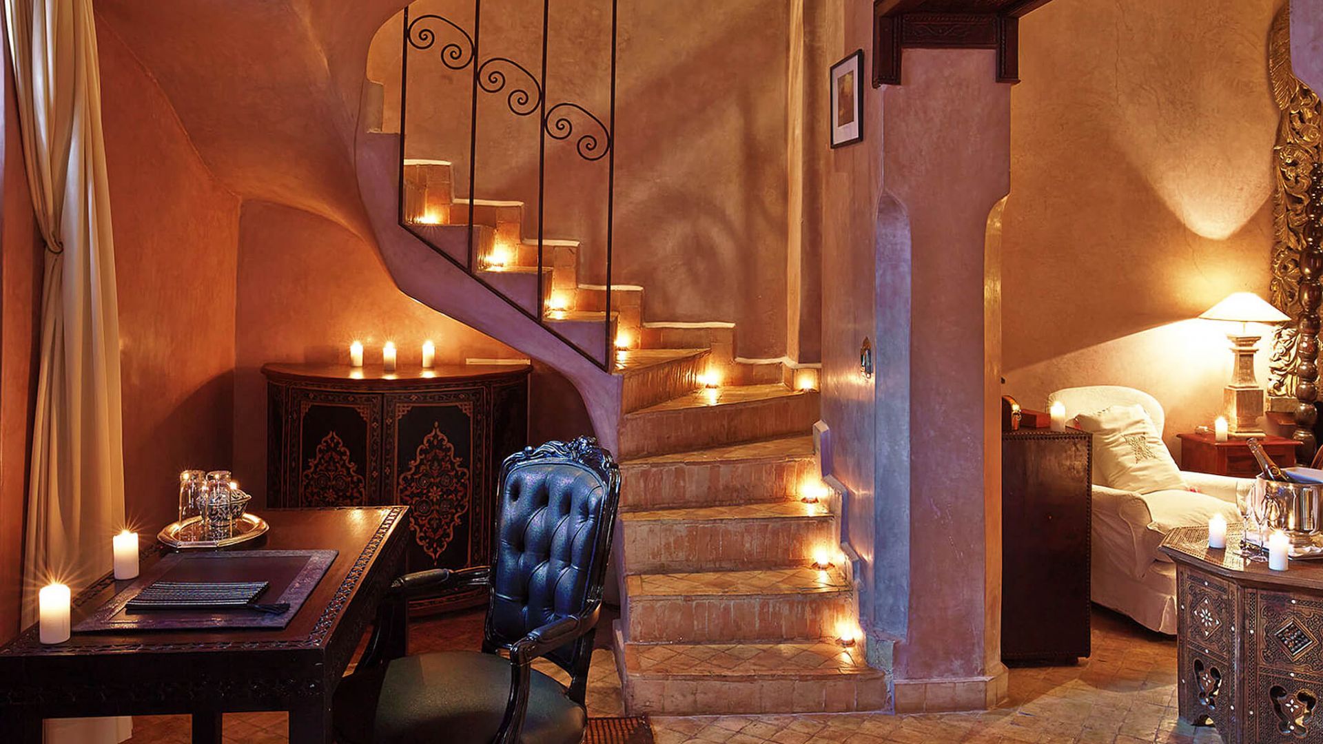 Your suite glows in golden light, silk curtains swaying as the call to prayer echoes faintly in the distance—a lullaby that belongs only to Marrakech.