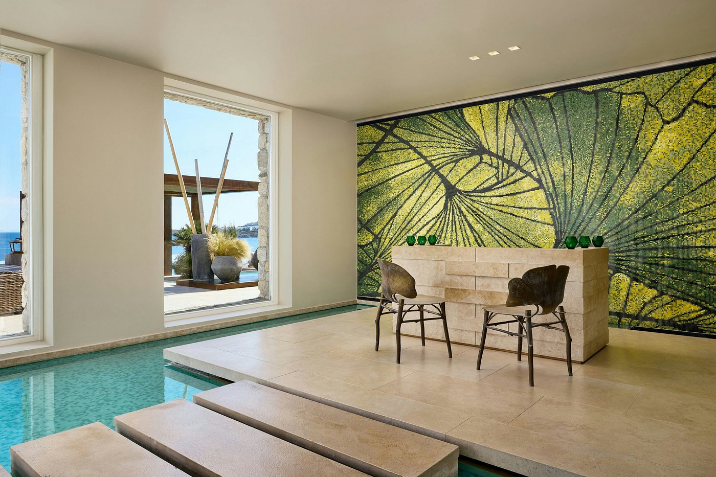 For friends/glam weekenders: Beach by day, laid-back Mykonos nights, spa resets in between.