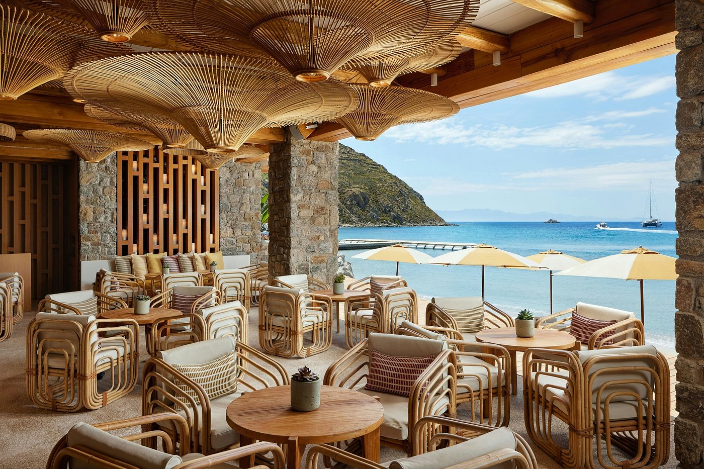 Location: Ornos Bay, Mykonos (Aegean Islands), Greece — ~10–15 minutes by car from JMK
