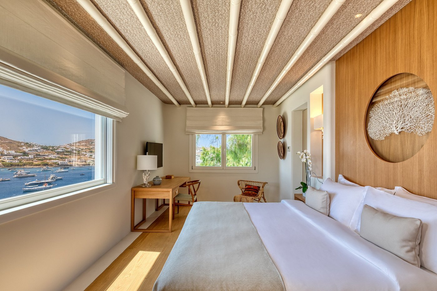 Style: Boutique, Resort, Bungalows — Cycladic whites, natural textures, sea-first design