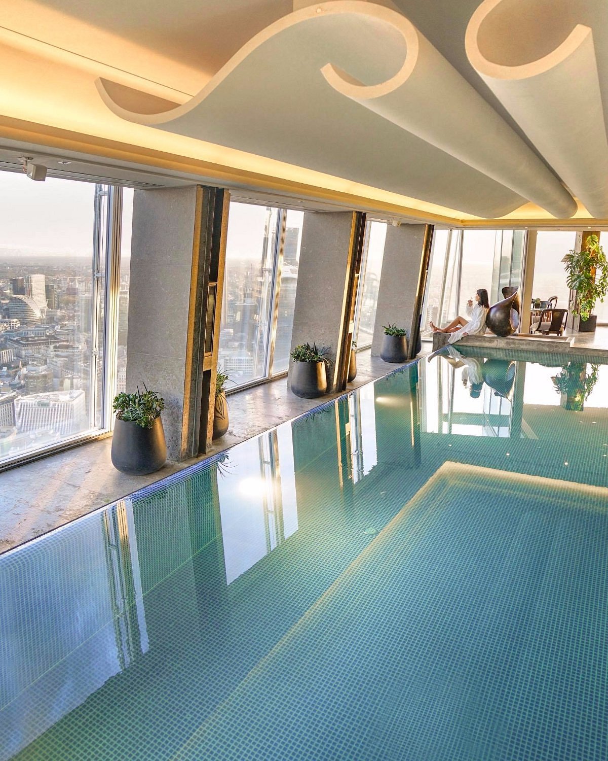 Inside, Eastern serenity meets London sophistication: glass, silk, and light in perfect harmony above the clouds.