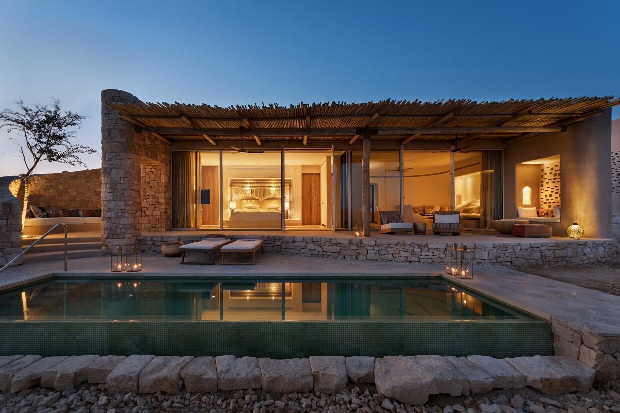 With just 60 suites and villas, the resort blends into the cliffs of the Negev Desert, its architecture echoing ancient caravansaries and traditional stone dwellings.