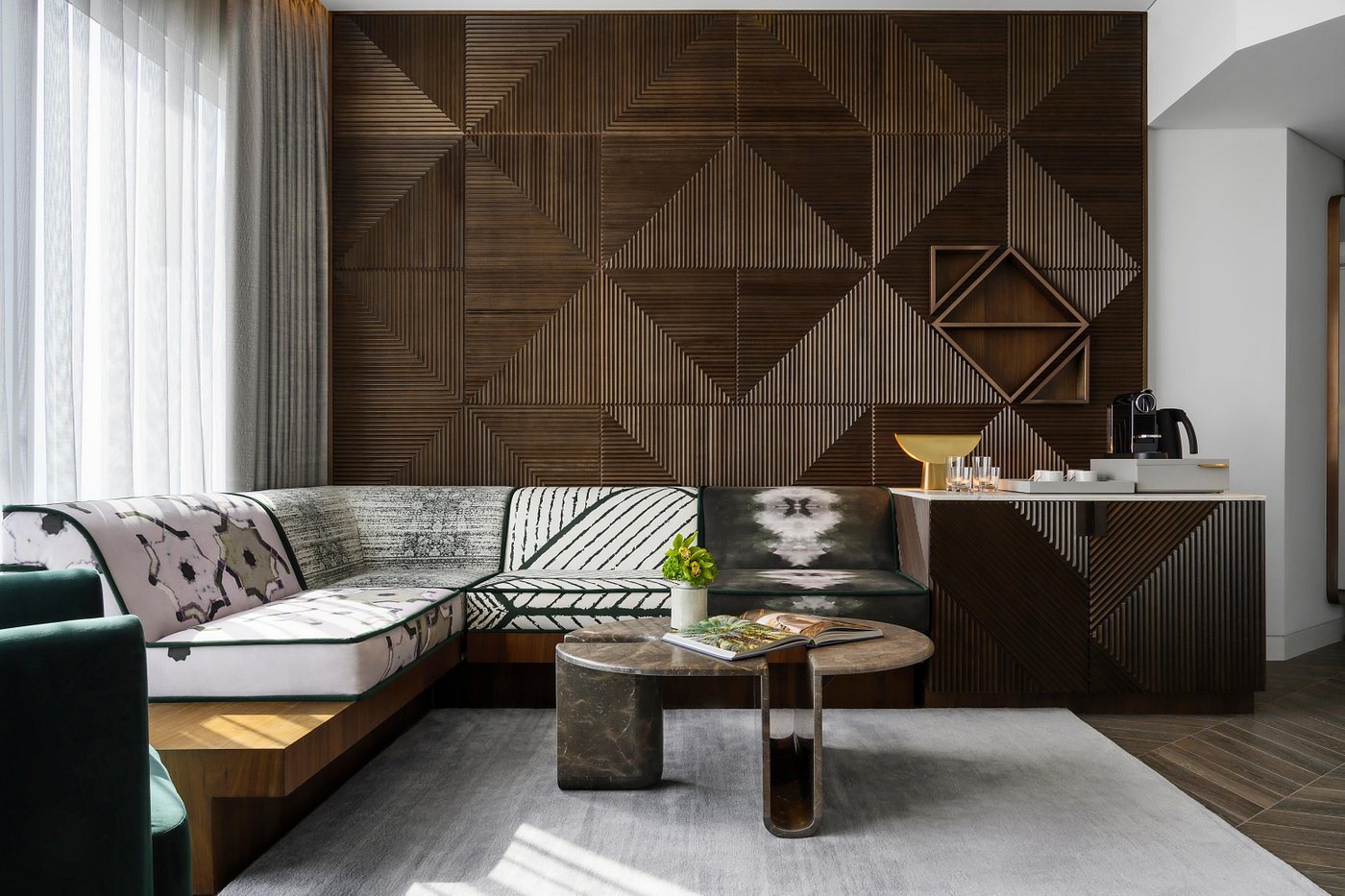 Style: Opulent and hotel-modern grandeur with couture-inspired personality.