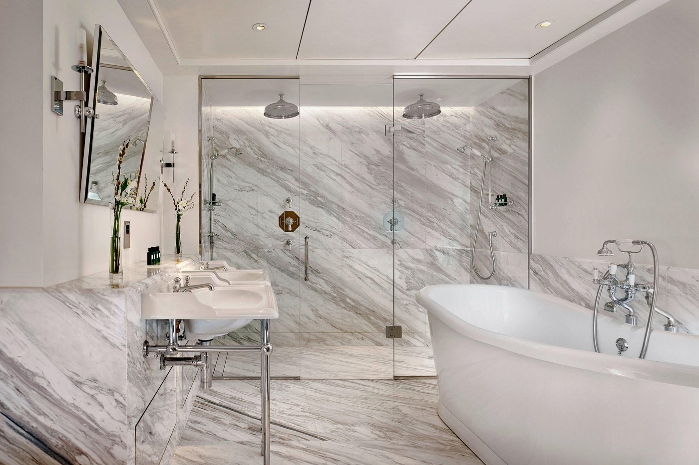 Return to a suite with marble bathrooms, deep fabrics, and the peaceful hush of the estate settling under its old trees.