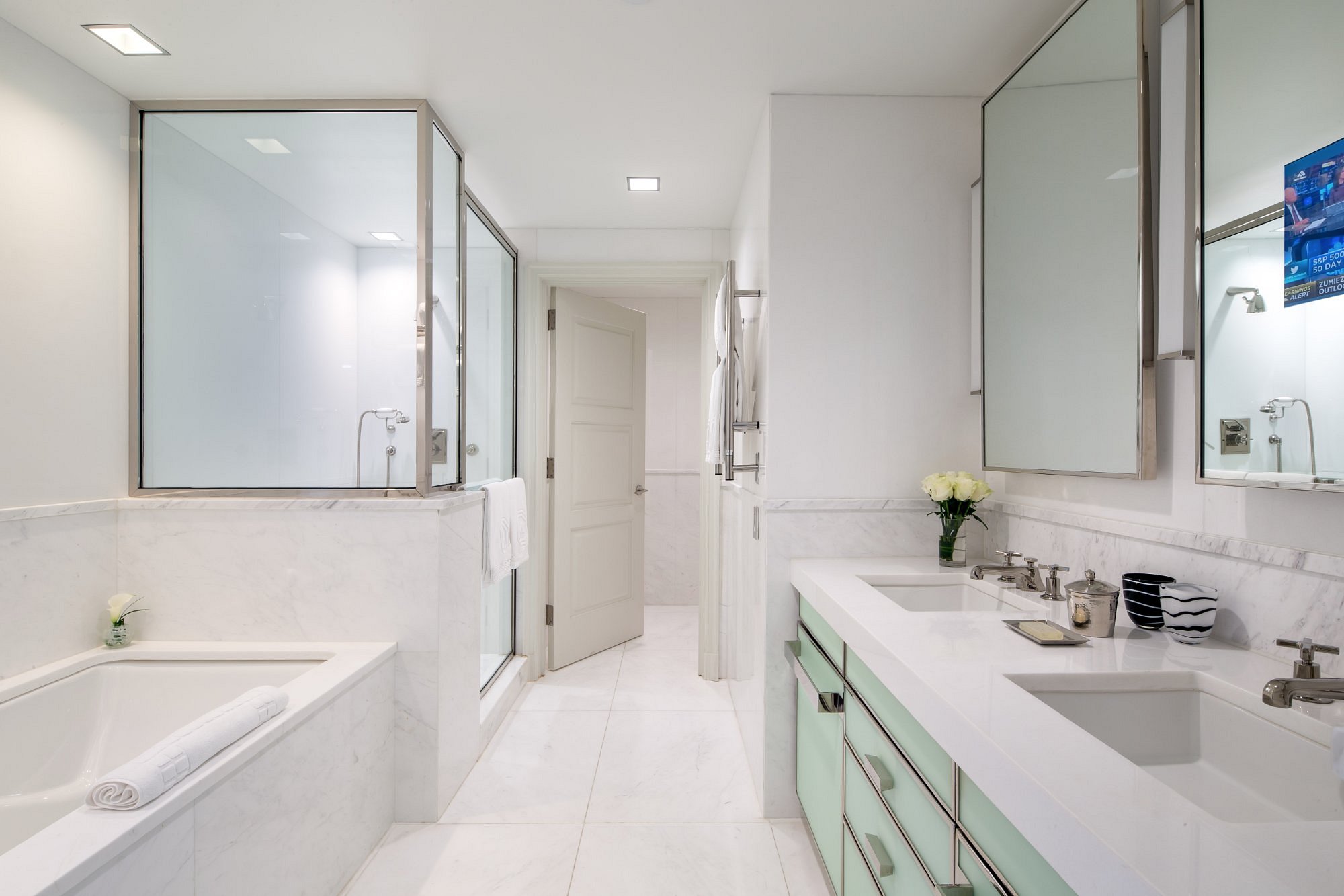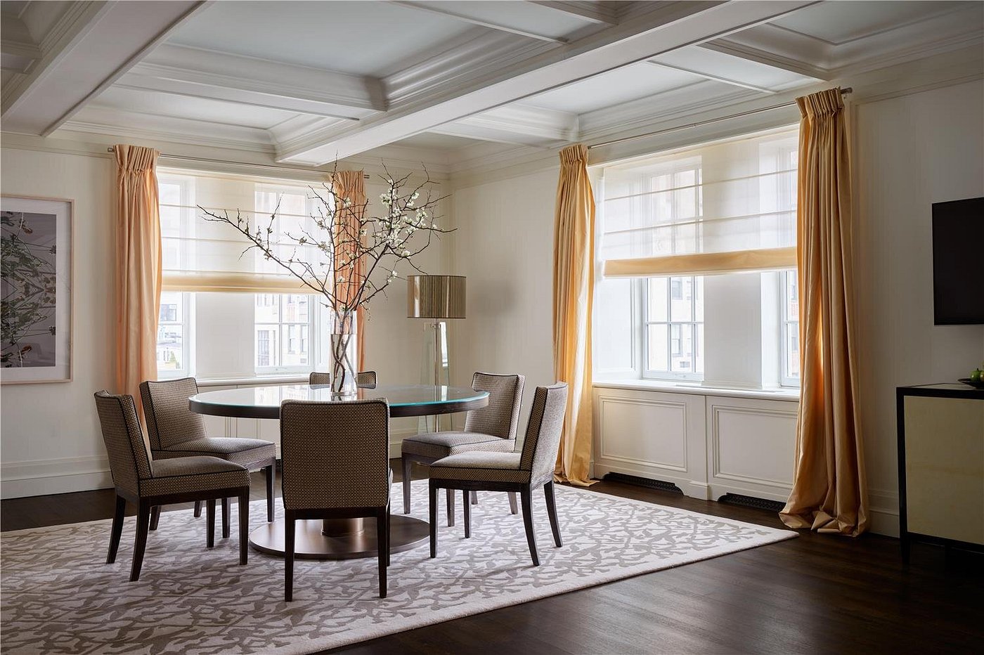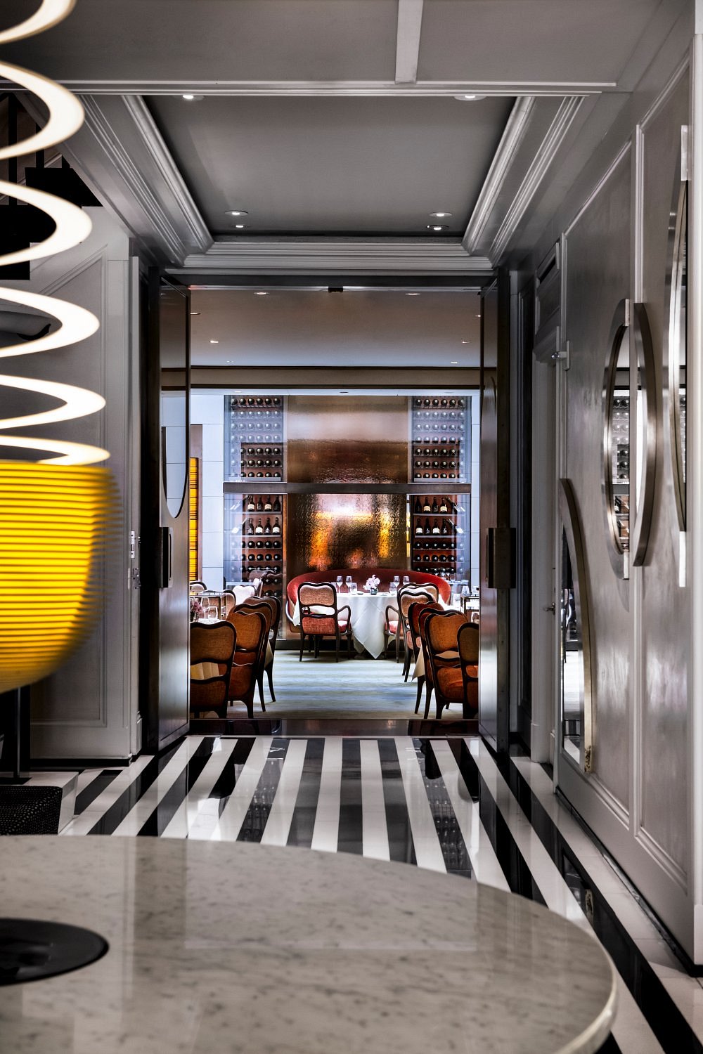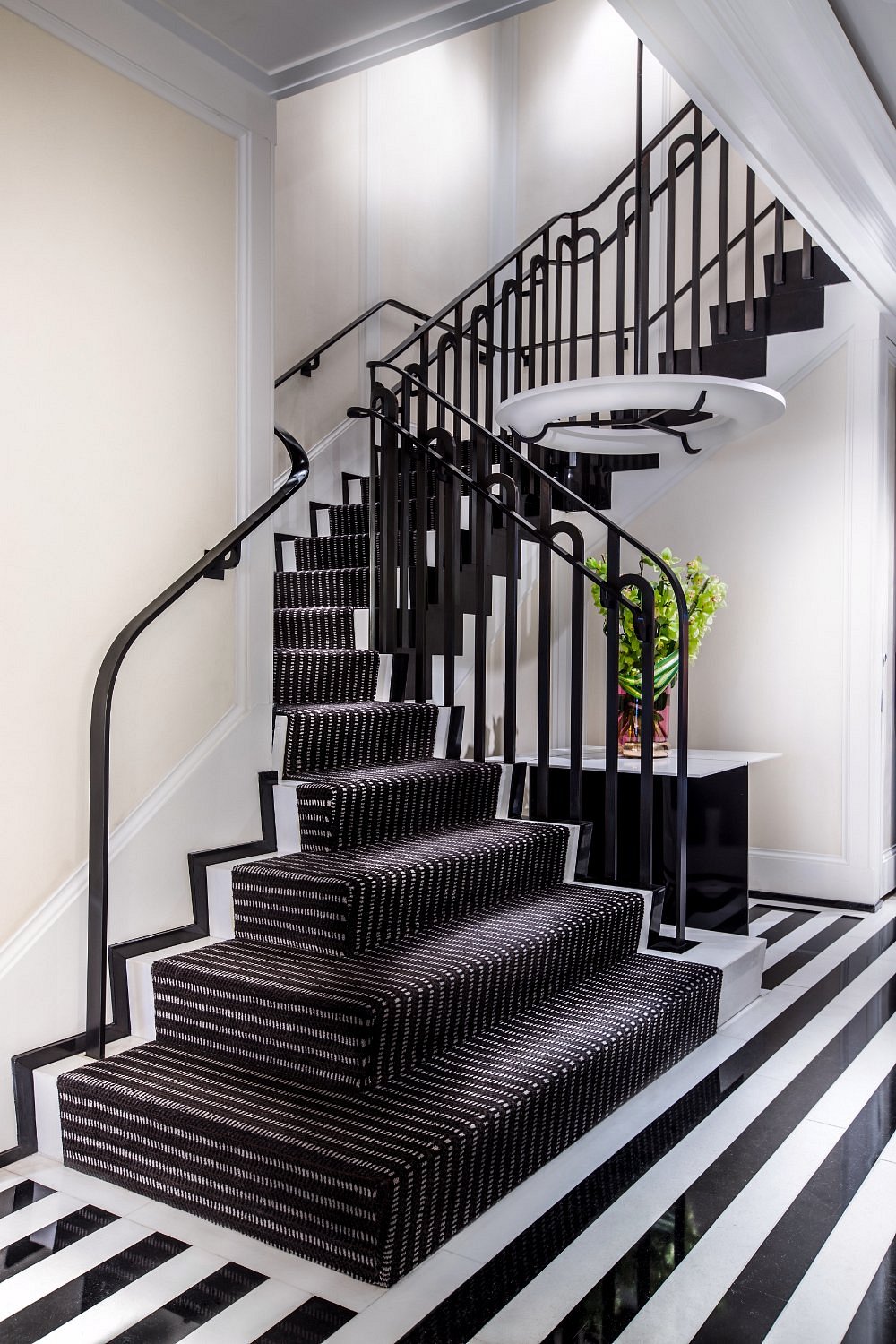 White marble, black lacquer, and dramatic contrast define the interiors, while Central Park sits just steps away. This is New York luxury with a fashion-forward edge.