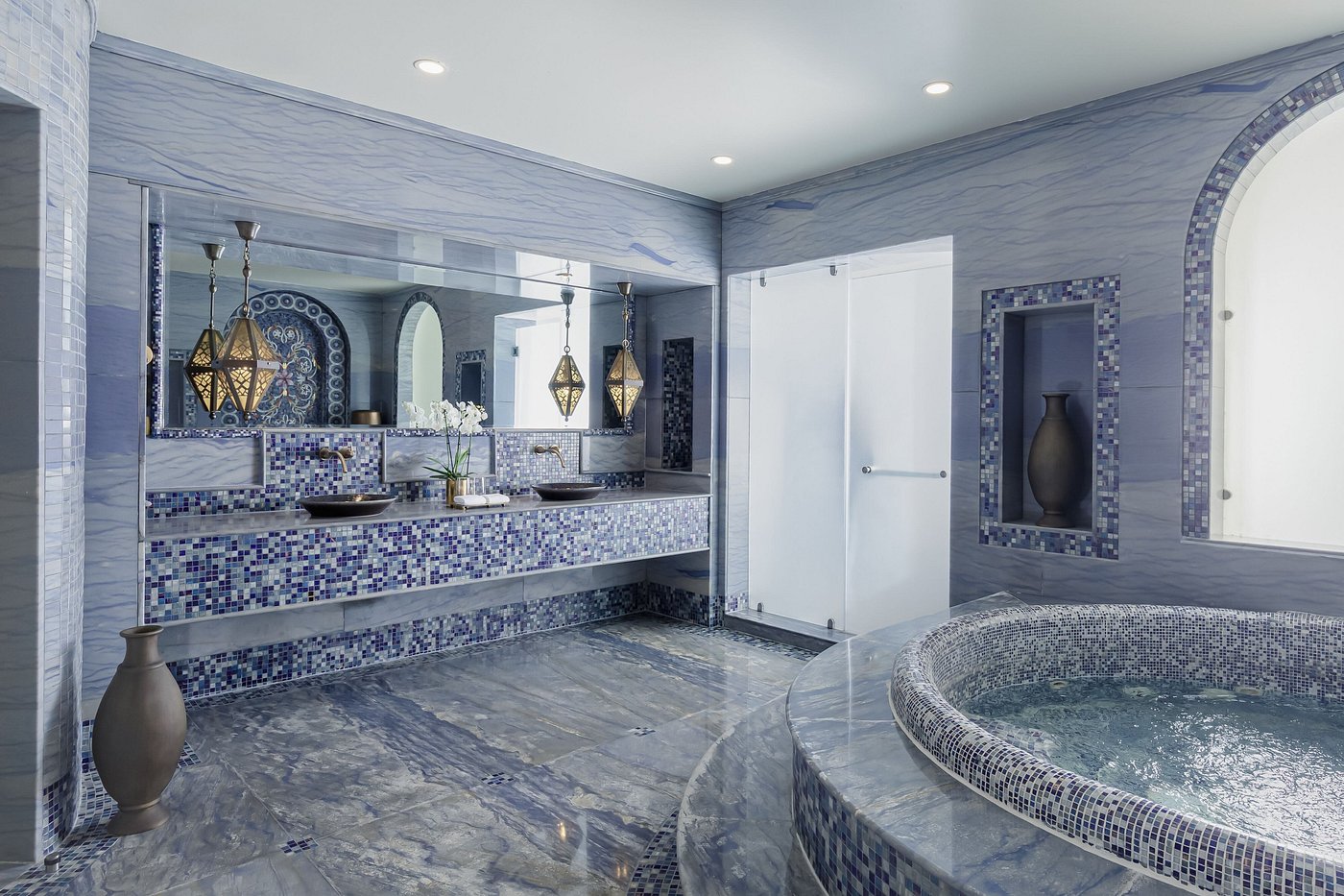Swim in the vast pools, relax on the private beach, or retreat to the spa for a hammam ritual scented with amber and rose. Wander through quiet courtyards as sea breezes move gently through archways.