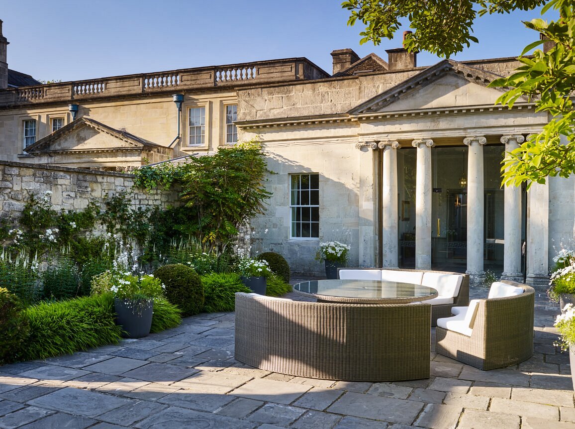 Occupying two grand townhouses within Bath’s iconic Royal Crescent, The Royal Crescent Hotel & Spa is pure 18th-century poetry—honey-colored stone, manicured lawns, and sweeping views of England’s most elegant city.