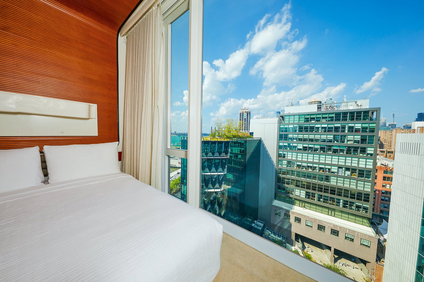 For couples: Sunset views over the Hudson River, late nights nearby, and the thrill of staying somewhere unmistakably alive.