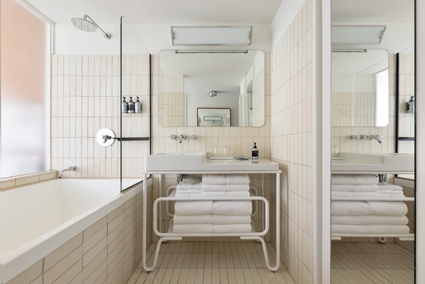 • The windows redefine the hotel room, turning the city itself into the main feature.