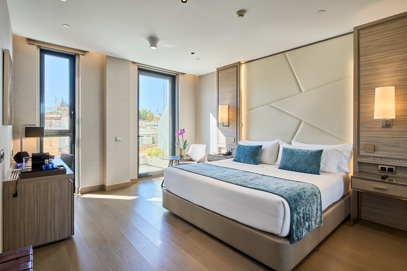 With 214 modern, design-forward rooms and suites, this is an urban sanctuary in the heart of Madrid—sleek lines, curated art, and a rooftop that trades city hum for open sky.